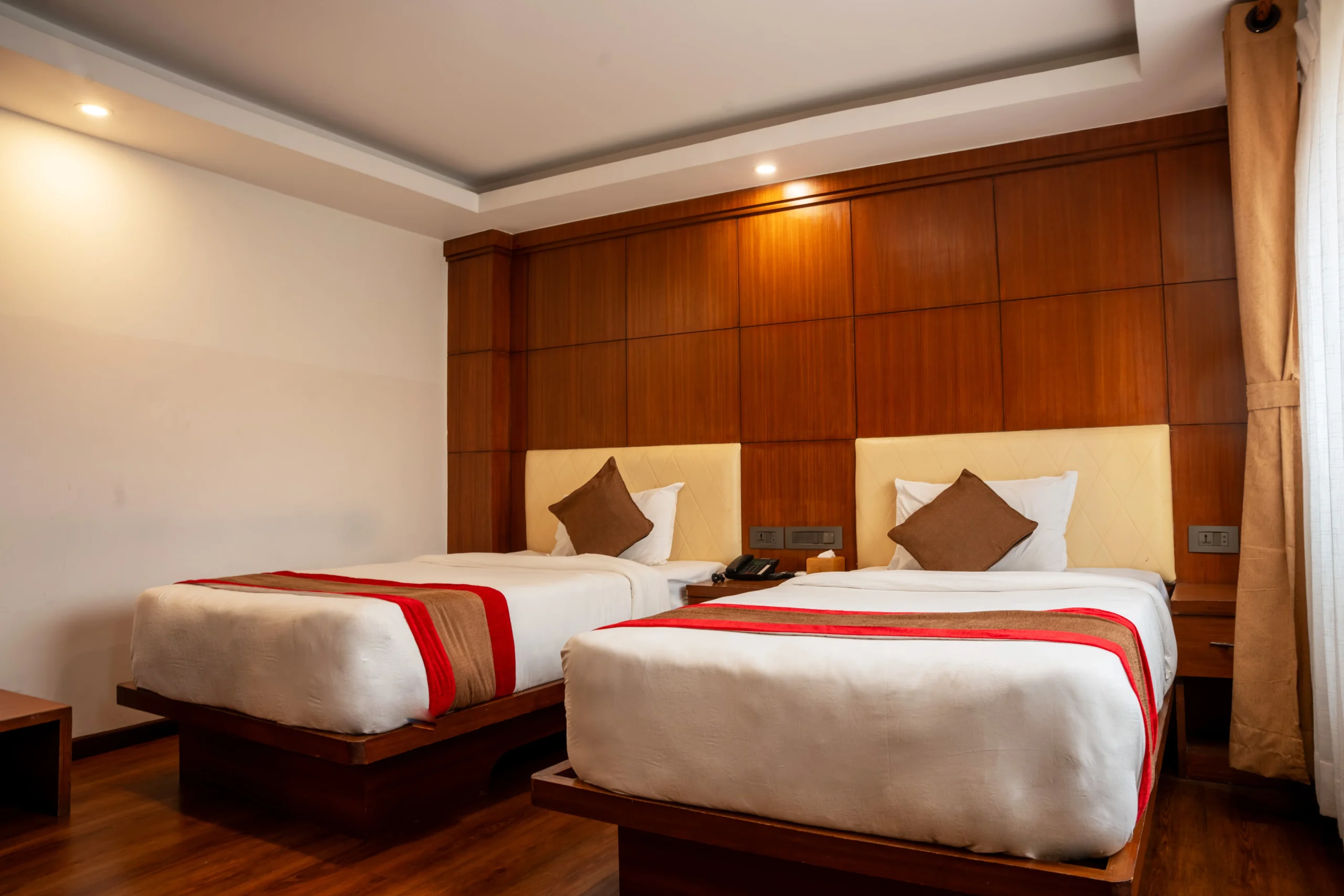 ✦ Comfort & Style Our Deluxe Twin Room in Thamel, Kathmandu is ideal for friends or travelers who prefer separate beds, offering both comfort and convenience. ✦ Room Features Twin beds • En-suite bathroom • Air conditioning • Free Wi-Fi • Television