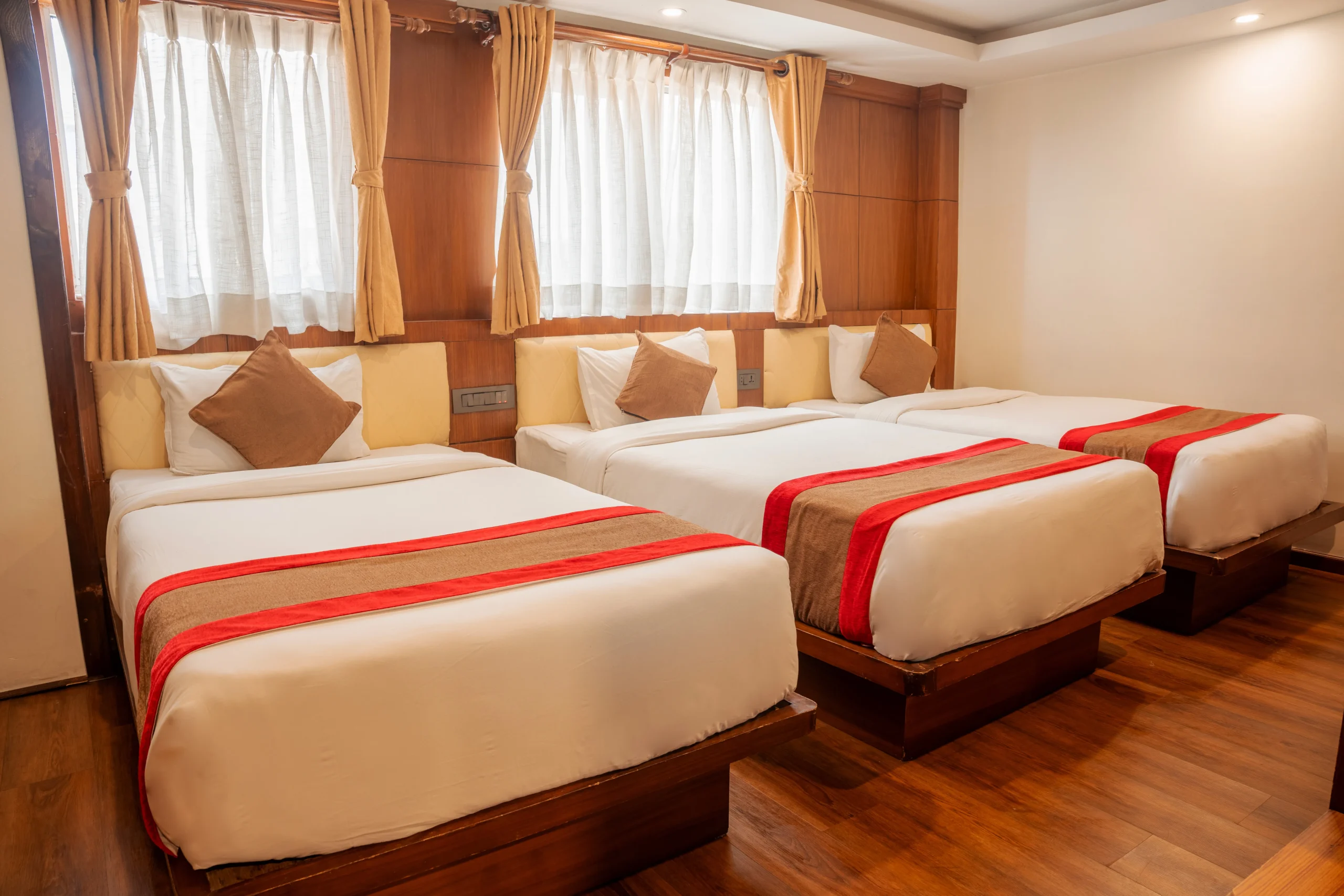 Travelling with family or friends? Our Deluxe Triple Room offers generous space and comfort for three guests. Located in the vibrant area of Thamel, this room provides contemporary amenities, stylish interiors, and a relaxing atmosphere after exploring Kathmandu’s UNESCO heritage sites.
